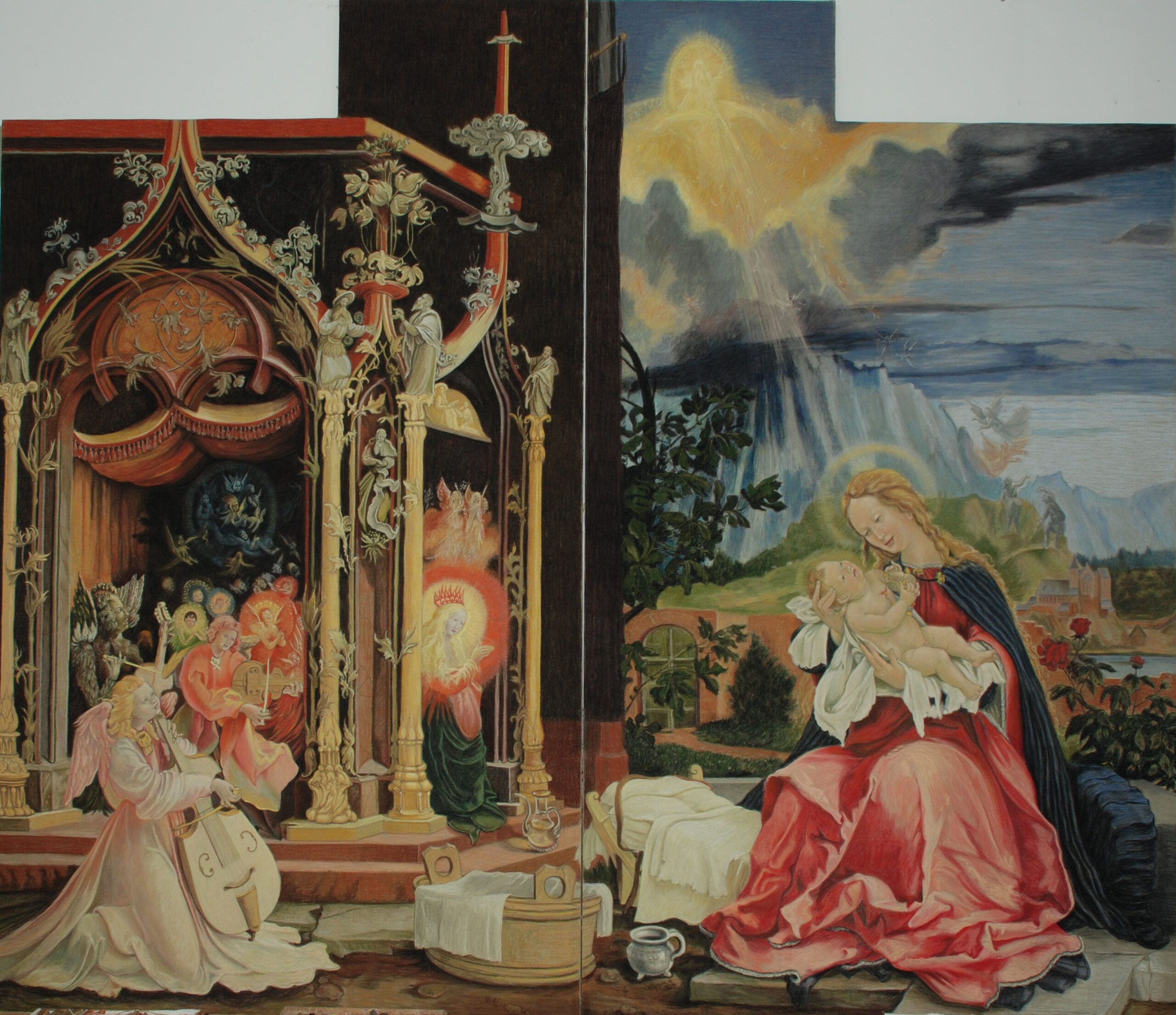 Engelkonzert, Maria mit Kind, nach Matthias Grünewald Isenheimer-Altar